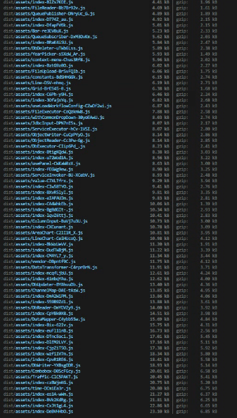 위와 같이 manualChunks 옵션에 들어갈 유틸을 생성해주었습니다. 비교적 변경사항이 적은 라이브러리거나, 사이즈가 큰 것들 위주로 쪼개주었고, 라이브러리의 관심사별로 자바스크립트 파일을 생성하도록 구성하였습니다.